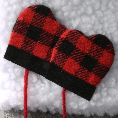 Combining fashion and function, this attractive Christmas stocking is deep and wide allowing Santa to fill it with lots of goodies. This seasonal sock is a warm gray color with red heel and toe accents, and a motif of ornate white snowflakes. From the bright white cuff two pom-poms on strings fall from little plaid mittens. Constructed of strong polyester materials designed for years of holiday cheer.