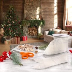 National Tree Company 3″ HGTV Home Collection Double-Fused Silver Plaid Ribbon