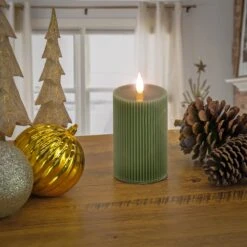 National Tree Company 3×9 HGTV Home Collection Flameless Georgetown Pillar Candle, Dk Green
