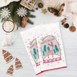 National Tree Company 18″ HGTV Home Collection Christmas Snow Globe Guest Towel Pair