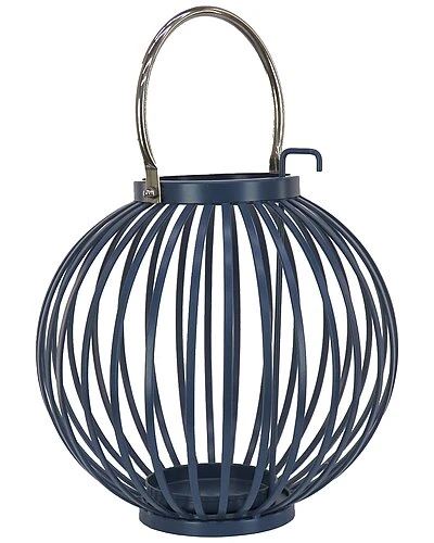 - This globe shape indoor/outdoor lantern style candleholder is constructed of steel components in a moonlit ocean blue paint finish with a stainless-steel handle. Stylish and contemporary in concept, the ribbed walls allow diffused candlelight to shine through. A lift-out ladle simplifies inserting and removing of candles. Durable in design and weather friendly, this versatile candleholder will add a creative flair to indoor or outdoor spaces. For tabletop or floor display..11″ height with 11″ diameter.Steel construction, moonlit ocean blue.Stainless steel handle.Lift-out candle ladle.Fits a single pillar candle, up to 4″ diameter