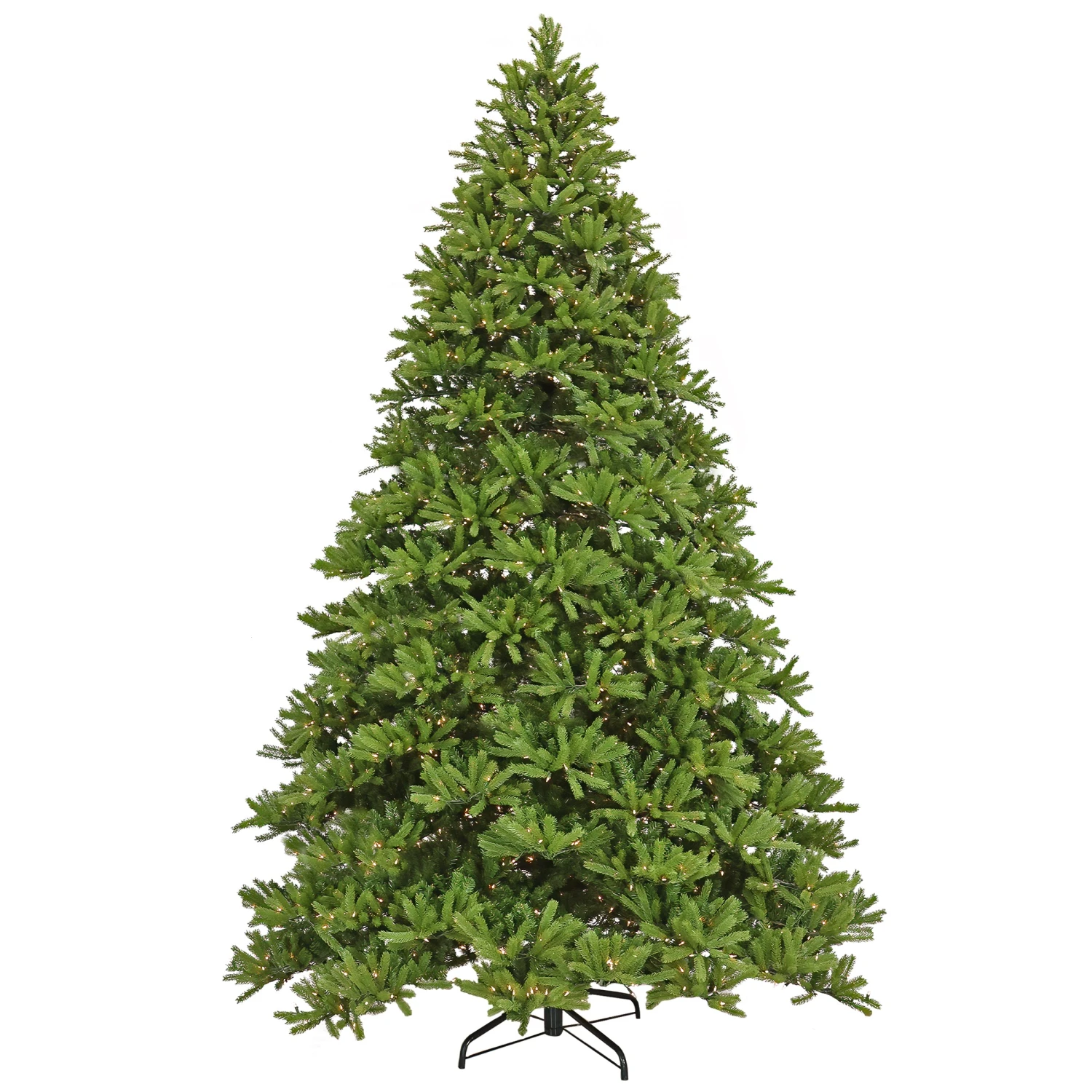 - This Feel Real ® Jersey Fraser Fir Hinged Artificial Pre-lit Christmas Tree is 12 feet tall with a 88″ diameter. Featuring hundreds of individually crafted branch tips that bring the beauty and realism to life.