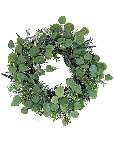 - Design details: this wreath features a swirling spray of eucalyptus leaves atop a background of spindly branch tips all anchored to a thick woven branch ring base. it is trimmed with long thin flower sprouts and clusters of berries that add complementing colors and natural appeal. hang this unique spring and summer flavored wreath on door, wall, or window in indoor or covered outdoor locations.