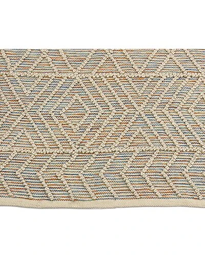 - This attractive indoor/outdoor area rug is constructed of 100% polyester that is stain and fade resistant and designed to endure outdoor environments. Handwoven with multicolor threads and featuring a braided geometric pattern, this floor covering will provide a soft texture while at the same time protecting the floor beneath. Durable and suitable for high-traffic areas, this rug will easily dress up interior or exterior spaces, perfect for porch, patio, family room or foyer..Measures 6 ft. long x 4 ft. wide.Hand-woven polyester, multicolor.Braided geometric pattern.Designed for indoor or outdoor use.Stain and fade resistant
