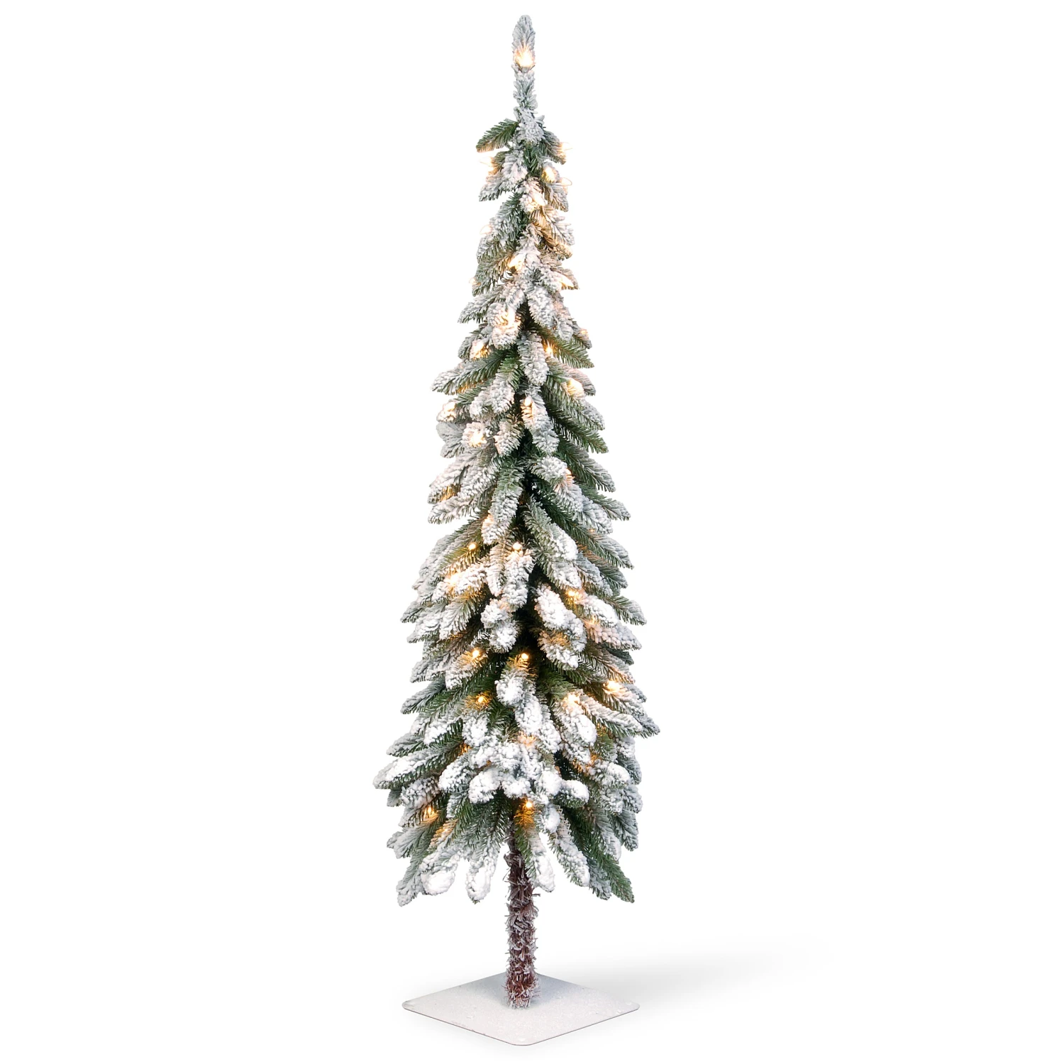 The Forestree is a slim profile tree with a downswept branch design and sturdy steel plate base. Branches, pole and base are sprinkled with flocking for the appearance of freshly fallen snow. This tree is pre-strung with 70 clear lights that remain lit even if a bulb burns out. Display this attractive evergreen in indoor or covered outdoor locations.