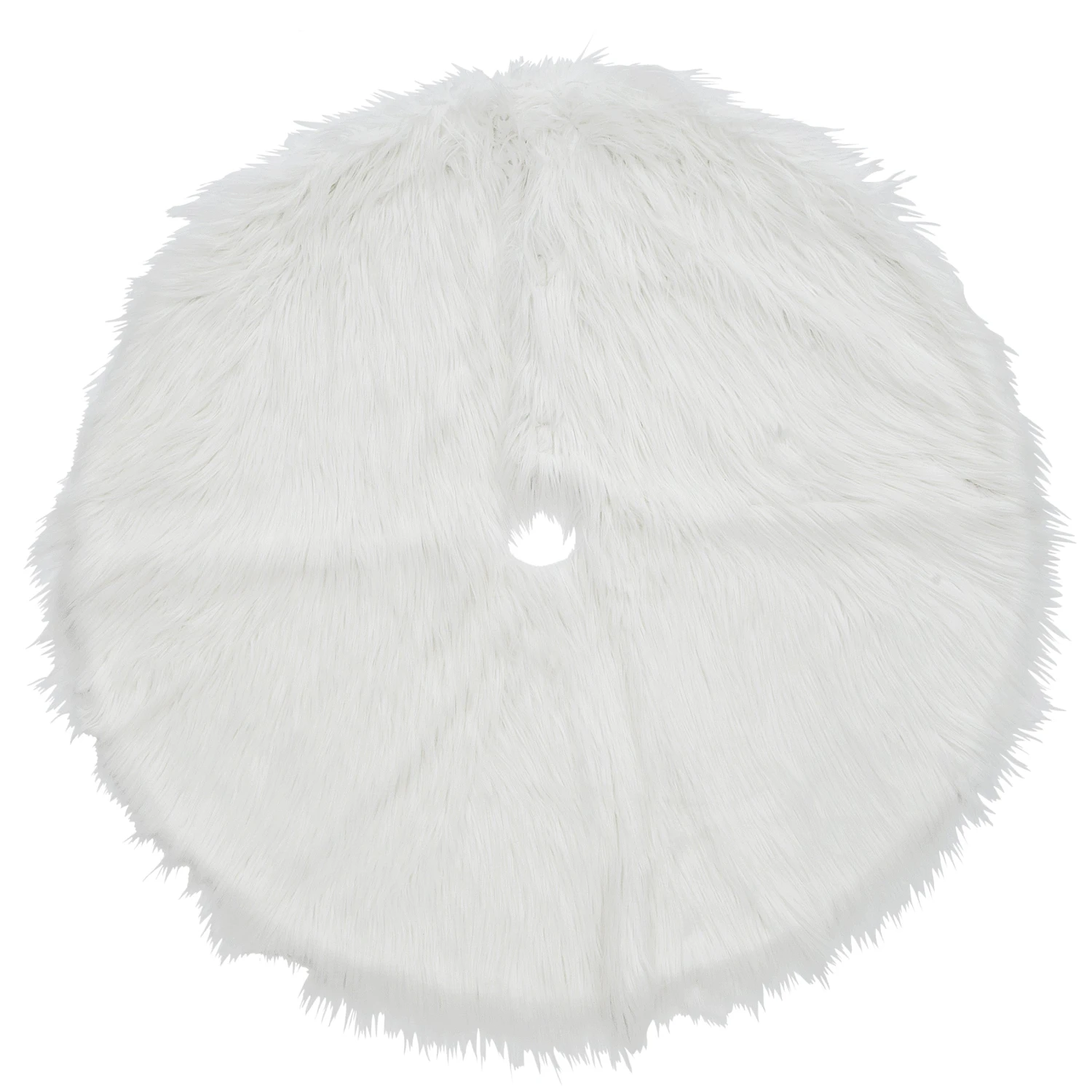 Add the finishing touch by surrounding the base of your Christmas centerpiece with this bright white tree skirt. Made of 100% polyester, this skirt features a soft and furry feel provided by the high pile fabric design. The split seam opening allows for easy placement with Velcro tabs included to close and secure the seam.