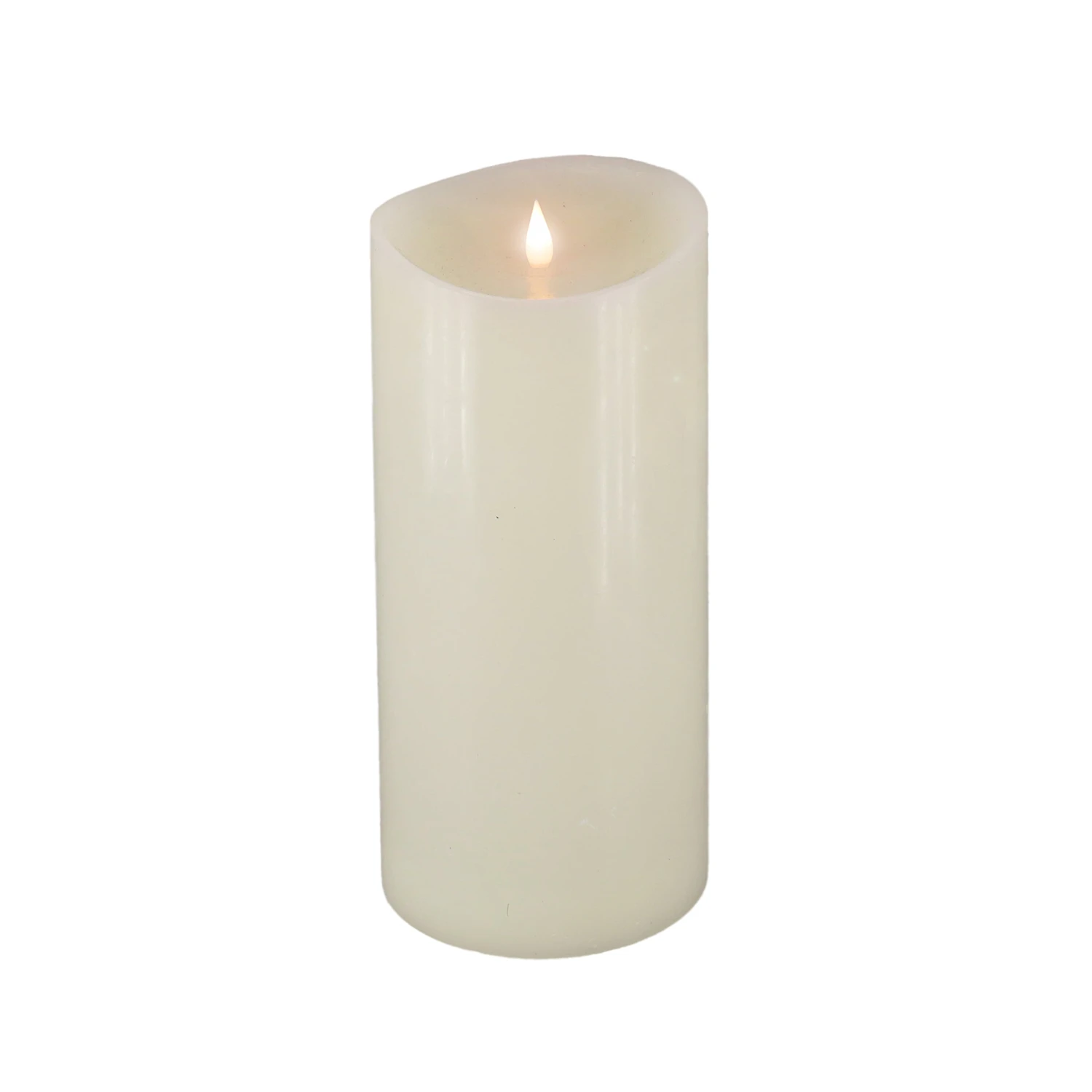 Battery operated with remote controlled functions, this flameless candle produces a realistic, soft, and safe candle glow. The smooth, ivory color exterior surface is crafted with real wax and features an uneven ‘melted’ top appearance. A handheld remote control operates the lifelike candle flame with functions that include brightness, flicker speed, and timer settings. Uses two C size batteries (not included).