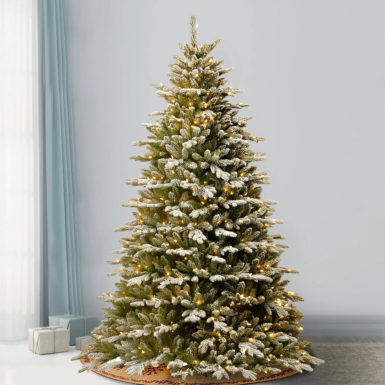 Transform your home into a winter wonderland with National Tree Company’s Pre-Lit a???Feel Reala??? Artificial Christmas Tree This Snowy Sierra Spruce tree is 7.5 feet tall and has a 59 diameter base, creating a slimmer profile and making it a better option for those with limited space. Friends and family alike will marvel at how the tree closely mimics those outside. Molded from real tree branches for an authentic living tree appearance, this tree features our trademarked a???Feel Reala??? technology. Hundreds of crush-resistant polyethylene tips form full bodied branches, creating a tree with remarkable realism. The tree is designed with a hinged branch system that allows the branches to swing down for a quick and simple set-up and fold back in for easy storage. Set aside 45-60 minutes after assembly to properly shape the tree by peeling back the branches and pulling the tips apart to give the branches a more full-bodied look. This fantastically festive tree is strung with 750 UL lights prior to packaging and includes a sturdy, metal base for a more convenient setup. The lights operate individually, so if the bulb lens has not been cracked or broken, the light set will continue to illuminate except for any individual bulbs that are not working. Before dressing the tree in twinkling lights and glistening ornaments, consider placing it in a living room or dining area where it can be viewed from multiple angles and does not block any entryways. Constructed with sturdy, high quality materials and hypo-allergenic, fire-resistant needles, this tree is built to bring holiday cheer for years to come. At National Tree Company, we strive to create high quality Christmas decorations to help you transform your home so you can keep making every holiday moment magical.